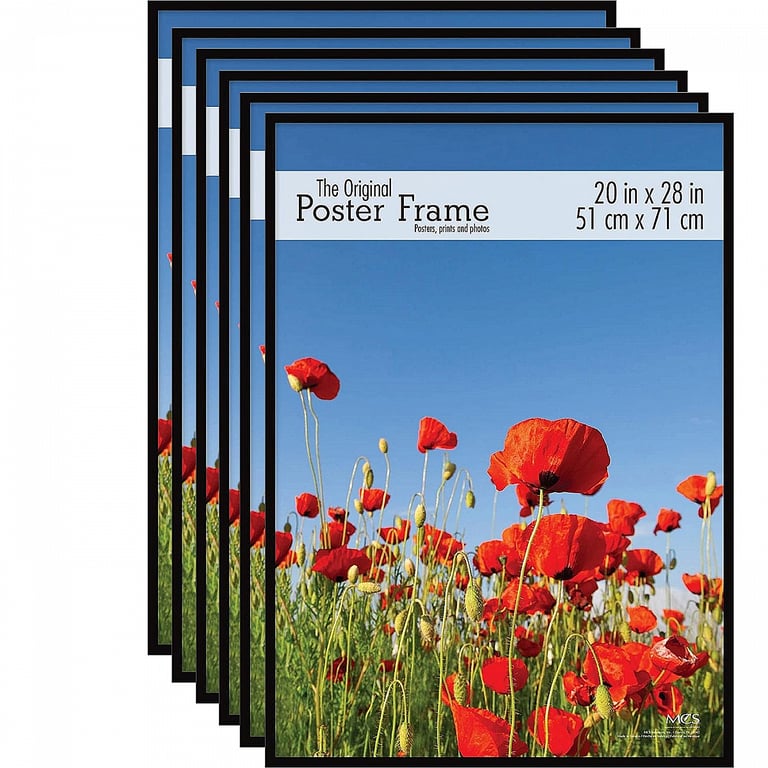 Main view Simple assembly Product Details MCS® Black plastic POSTER size 20x28 frame with Masonite Backing by MCS® (6 pack) — This is a terrific poster frame for volume users. Attractive black ABS ½" plastic moulding with ultra-clear, glare resistant plexi lens.Wall mounts included for easy hanging. Individually priced; sold in 6's to save you shipping expense (counts as 1 unit).Made by MCS®. For your shopping convenience, SendAFrame stocks the complete line of MCS poster frames. Click here: MCS Poster & Wall frames at SendAFrame.com Very easy assembly: Black plastic POSTER size 20x28 frame with Masonite Backing by MCS® (6 pack) Model #044021230381 List $216.00 You pay $167.70 ( set of 6 / $27.95 ea ) This item can be expected to ship by 02/06/2026. Order now by clicking ADD TO CART (below); you are only charged when we actually ship. Or, Click here to be automatically notified when it comes back in stock. Your Price Match is Active Your request for a price of $0.00 for a minimum quantity of has been accepted. You have [time] left to purchase this item for $0.00 instead of $27.95 each. Find a Lower Price? We BEAT All Authorized Retailers [?] FEATURESDisplays:20"x28"Material:Acrylic | ResinFinish:BlackOccasion:Business & office, Home decorating, Public Area DisplayStyle:Contemporary, TraditionalOrientation:BothBrand:MCS®Display Type:Wall Only SHARE THIS ITEM Share on Facebook
