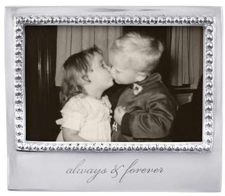 Main view Personalize Gifts for every occasion Create your own - see below to order Product Details Mariposa® The original ALWAYS AND FOREVER Statement frame crafted by Mariposa® — The ALWAYS & FOREVER Statement frame for 6"x4" photos. People love the Mariposa casual, sculpted elegance — a strong, virtually carefree material. Their artisan handcrafted look in recycled aluminum is both pleasing to the eye and touch, as well as 100% ecologically sound. SendAFrame stocks the entire Mariposa® picture frame collection. Mariposa® Design Collection. Always shipped in a Mariposa beautiful signature box - makes gifting easy! The original ALWAYS AND FOREVER Statement frame crafted by Mariposa® Model #808813132587 $56.00 only 2 left, order soon. In stock Ships next business day [?] Your Price Match is Active Your request for a price of $0.00 for a minimum quantity of has been accepted. You have [time] left to purchase this item for $0.00 instead of $56.00 each. Find a Lower Price? We BEAT All Authorized Retailers [?] FEATURESDisplays:4"x6"Material:AluminumFinish:SilverOccasion:Anniversary, Engagement, Inspirational, Romantic, Valentine`s Day, WeddingStyle:Contemporary, Romantic, Santa Fe, Sophisticated, Words & whimsy, Eco-Friendly-Recycled, Modern (contemporary) wip, Sentiments | ready madeOrientation:Horizontal OnlyBrand:Mariposa®Display Type:Desktop Only Approx. Overall Dimensions:6 3/4"x5 3/4" This item ships in its own box SHARE THIS ITEM Share on Facebook