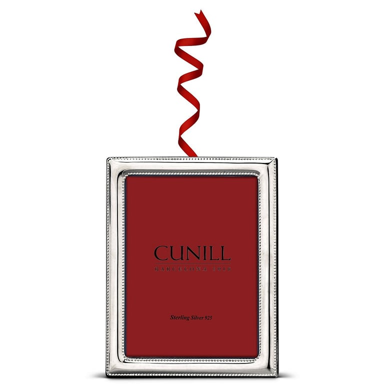 Main view Product Details Cunill® Silver Fine Sterling PEARLS Ornament/Frame by Cunill® Italy — The Cunill PEARLS 2¼"x3¼" sterling silver ornament and desk top picture frame is two items in one box! Two backs are included: one with the clasp and red ribbon for hanging as an ornament and one with an easel to display table-top. Crafted in fine .925 sterling silver (92.5% pure silver and 7.5% copper) Hallmark stamp certifying the legal US/UK definition of sterling silver Hand made using steel tooling to create crisp visible patterns in the metal Solid wood backs finished in cherry mahogany with gloss lacquer and accented with silver clasps Two way easel for Portrait (vertical) or Landscape (horizontal) picture orientation Guaranteed tarnish proof lacquer treated, no need to polish for the life of the frame Signature 2-piece luxury gift box Engraving available Crafted in and imported from Italy. To view the complete collection, visit: Cunill® Fine Sterling PEARLS Ornament/Frame by Cunill® Italy Model #735816749316 List $95.00 You pay $84.95 This item can be expected to ship by 12/01/2025. Order now by clicking ADD TO CART (below); you are only charged when we actually ship. Or, Click here to be automatically notified when it comes back in stock. Your Price Match is Active Your request for a price of $0.00 for a minimum quantity of has been accepted. You have [time] left to purchase this item for $0.00 instead of $84.95 each. Find a Lower Price? We BEAT All Authorized Retailers [?] This item ships in its own box SHARE THIS ITEM Share on Facebook