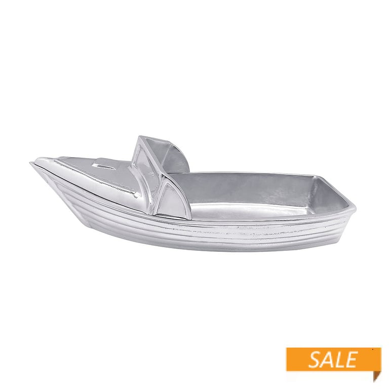 Elevate your dining experience with our unique Motorboat Server from the High Seas Collection. Hand-sculpted from 100% recycled aluminum, this distinctive serving dish not only adds a touch of maritime charm to your table but also makes a sustainable statement.