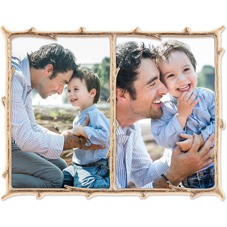 Main view Product Details Lawrence Frames® Gold Metal Natural Branch Motif 4x6 Double Frame — Decorative gold branches are the unique design of this picture frame. Polished brass plated metal frame has a rich and lustrous gold finish. High quality black velvet backing with easel for vertical or horizontal tabletop display, and comes with hangers for vertical or horizontal wall mounting. Heavy weight cast metal picture frame. Glass lens. Individually boxed. Easel back for tabletop display. Wall mounts for easy hanging. By Lawrence Frames®. Gold Metal Natural Branch Motif 4x6 Double Frame Model #751148093507 List $39.00 You pay $29.95 This item is currently out of stock and we do not have an expected date at the present time. click here to be automatically notified when it comes back in stock or email merchandising@sendaframe.com for availability information. You can place this item in your shopping cart. It will be added to the 'saved for later' section. Your Price Match is Active Your request for a price of $0.00 for a minimum quantity of has been accepted. You have [time] left to purchase this item for $0.00 instead of $29.95 each. Find a Lower Price? We BEAT All Authorized Retailers [?] FEATURESDisplays:4"x6"Material:Gold plateFinish:GoldOccasion:Anniversary, Birthday, Business & office, Corporate gifts, Engagement, Friendship, Good luck, Home decorating, Weekend Host Gifts, Housewarming, Mother`s Day, Retirement, Thank-Motivate-Reward, WeddingStyle:Classic, TraditionalOrientation:Vertical OnlyBrand:Lawrence Frames®Display Type:Desktop or Wall Approx. Overall Dimensions:9"x6 5/16"x5/8" This item ships in its own box SHARE THIS ITEM Share on Facebook