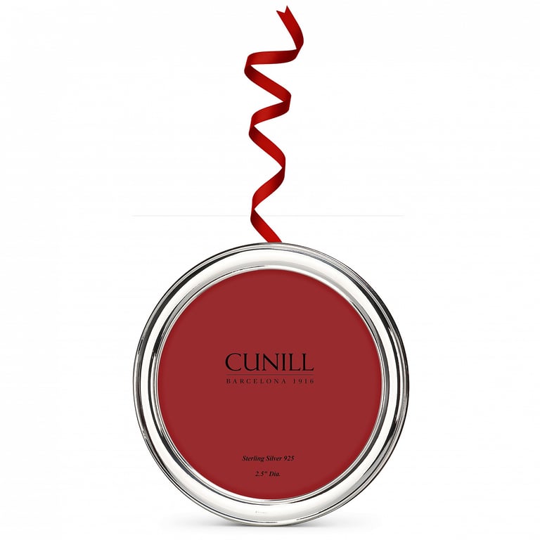 Main view Dual back Product Details Cunill® Silver Fine Sterling LONDON ROUND 2-in-1 Ornament/Frame by Cunill® Italy — This wonderful piece from world famous Cunill® Silversmiths holds a 2½" x 2½" miniature photo. (your photo probably needs to be cut to round shape). Features a fine inner and outer caviar beading accent. LONDON ROUND Comes with 2 backs: one with an easel for table-top display and 1 unique back, with red satin ribbon - for hanging.Pure .925 fine silver, the piece is tarnish resistant for care-free display. A wonderfully worked, heavy sterling piece by master silversmiths, the quality is unsurpassed. Frame comes with 2 backs - 1 for tabletop display and 1 for hangng. Crafted in and imported from Italy. To view the complete collection, visit: Cunill® Fine Sterling LONDON ROUND 2-in-1 Ornament/Frame by Cunill® Italy Model #743970270140 List $100.00 You pay $91.95 In stock Ships next business day [?] Your Price Match is Active Your request for a price of $0.00 for a minimum quantity of has been accepted. You have [time] left to purchase this item for $0.00 instead of $91.95 each. Find a Lower Price? We BEAT All Authorized Retailers [?] This item ships in its own box SHARE THIS ITEM Share on Facebook