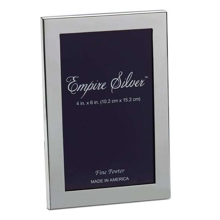 Product Details Empire Silver® Luxe engraveable BRITE Solid Pewter 4x6 frame by Empire Silver® — Solid fine pewter, this ultra-luxe frame is top quality and wonderful for creating an heirloom piece.For 4x6" prints from an old-world type manufacturer. Engraves beautifully with its ½" wide channel edge.Glare resistant glass lens. Rich hunter green velvet back with perfect fitting tab locks. Easel stand for tabletop display. Hand crafted in the USA by the Empire Silver Company®, arguably America's finest silversmith house. Luxe engraveable BRITE Solid Pewter 4x6 frame by Empire Silver® Model #781642002835 List $185.00 You pay $134.95 In stock Ships next business day [?] Your Price Match is Active Your request for a price of $0.00 for a minimum quantity of has been accepted. You have [time] left to purchase this item for $0.00 instead of $134.95 each. Find a Lower Price? We BEAT All Authorized Retailers [?] FEATURESDisplays:4"x6"Material:Pewter (fine)Finish:SilverOccasion:Anniversary, Baby shower, Bar & Bat Mitzvah, Birthday, Business & office, Congratulations, Corporate gifts, Employee honors, Engagement, Good luck, Graduation, Housewarming, Inspirational, Mother`s Day, New baby, Retirement, Romantic, Thank-Motivate-RewardStyle:Classic, Contemporary, Minimal, Traditional, Romantic, Unique | LimitedOrientation:BothBrand:Empire Silver®Display Type:Desktop Only This item ships in its own box SHARE THIS ITEM Share on Facebook
