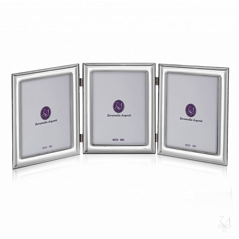 Main view 3-pc Gift Package (sample) Product Details Zaramella Argenti® ROMA TRIPLE beaded border Sterling Silver 4x6 frame by Zaramella Argenti® Italy — Fine sterling ROMA features caviar beading on both inner and outer borders of a square-cornered flute frame. Handsomely finished quality wood back. Glare resistant glass lenses. Moulding edge is 3/4" wide.Zaramella® sterling never needs polishing - it is finely lacquered to keep it tarnish free. Each piece is debossed on front with the ZA family mark, proudly giving signature to the quality this 60 year old company has earned. This special frame is sure to be a family heirloom, treasured for generations.Crafted in - and imported from - Italy. To view the complete collection, visit: Zaramella Argenti® Collection. ROMA TRIPLE beaded border Sterling Silver 4x6 frame by Zaramella Argenti® Italy Model #033917072235 List $400.00 You pay $369.95 In stock Ships next business day Your Price Match is Active Your request for a price of $0.00 for a minimum quantity of has been accepted. You have [time] left to purchase this item for $0.00 instead of $369.95 each. Find a Lower Price? We BEAT All Authorized Retailers [?] FEATURESDisplays:4"x6"Material:Sterling Silver (fine)Finish:SilverOccasion:Anniversary, Birthday, Baptism + Christening, Engagement, Graduation, Mother`s Day, Thank-Motivate-Reward, WeddingStyle:Classic, Contemporary, Traditional, Unique | LimitedOrientation:Vertical OnlyBrand:Zaramella Argenti®Display Type:Desktop Only This item ships in its own box SHARE THIS ITEM Share on Facebook
