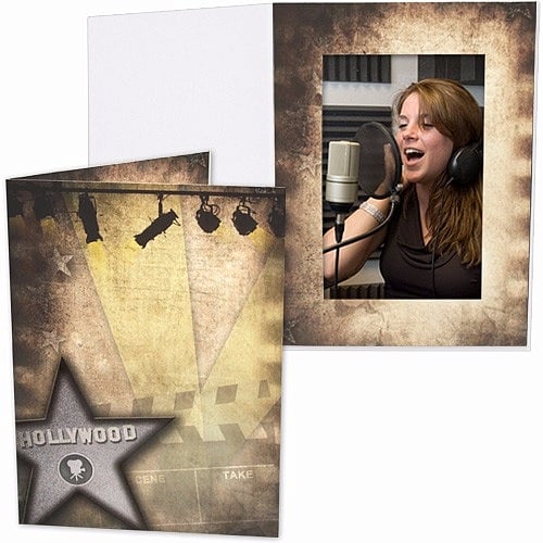 Main view Sizing Unfilled view Product Details Collectors Gallery HOLLYWOOD STAR 5x7 Photo Event Folder — Frame your photos and prints like a professional studio photographer with our classic HOLLYWOOD STAR print folders. Lightweight smooth finish card stock Accommodates vertical 5"x7" prints Price INCLUDES custom personalizing. ADD to CART for details Window border glued along top edge, bottom edge open Folders shipped flat, not folded Envelopes available separately (not required) Folders are priced individually; minimum 50. Made in the U.S.A. This folder is available with personalizing. Click PERSONALIZE THIS ITEM link for details. HOLLYWOOD STAR 5x7 Photo Event Folder Model #52539451 $1.75 This item can be expected to ship by 12/01/2025. Order now by clicking ADD TO CART (below); you are only charged when we actually ship. Or, Click here to be automatically notified when it comes back in stock. Your Price Match is Active Your request for a price of $0.00 for a minimum quantity of has been accepted. You have [time] left to purchase this item for $0.00 instead of $1.75 each. Find a Lower Price? We BEAT All Authorized Retailers [?] FEATURESDisplays:5"x7"Material:Card-stockFinish:Gold, Ivory/Cream, SilverOccasion:Birthday, Birthday (child), Group Events + PartiesStyle:Celebrate America, Contemporary, Pop Culture, Words & whimsyOrientation:Vertical OnlyDisplay Type:not applicable n/a SHARE THIS ITEM Share on Facebook