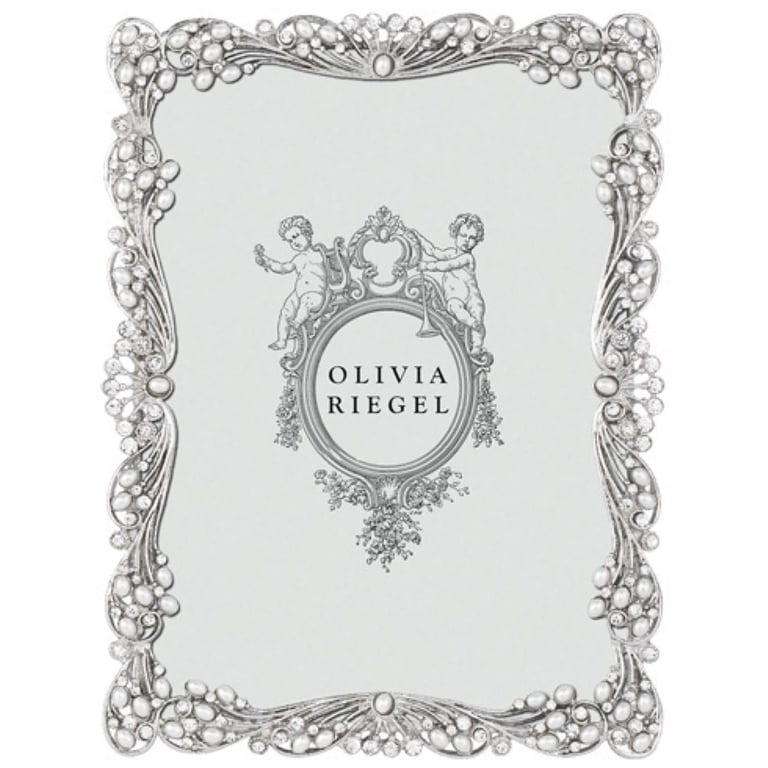 Product Details Olivia Riegel AUDREY SILVER Austrian Pearl/Crystal 5x7 frame by Olivia Riegel® — Silver finished cast pewter filigree work with hand-set clear Austrian crystals and faux cultured freshwater pearls. Elegant gray moiré silk back with easel designed for vertical or horizontal placement. Bevelled glass lens. Signature gift box. An original design frame from the Olivia Riegel® collection. SendAFrame proudly carries the entire Olivia Riegel® collection for your shopping convenience. AUDREY SILVER Austrian Pearl/Crystal 5x7 frame by Olivia Riegel® OLIVIA RIEGEL® FALL CELEBRATION SAVINGS - Buy More / Save More * Add this item to your cart for the full details of this promotion. Conditions may apply. Model #55019628 $130.00 This item IS in stock and can be expected to ship 11/24/2025 Your Price Match is Active Your request for a price of $0.00 for a minimum quantity of has been accepted. You have [time] left to purchase this item for $0.00 instead of $130.00 each. Find a Lower Price? We BEAT All Authorized Retailers [?] FEATURESDisplays:5"x7"Material:Jewels/crystalFinish:SilverOccasion:Congratulations, Good luck, Housewarming, Mother`s Day, Romantic, Thank-Motivate-Reward, WeddingStyle:Classic, Romantic, Ornate, TraditionalOrientation:BothBrand:Olivia RiegelDisplay Type:Desktop Only This item ships in its own box SHARE THIS ITEM Share on Facebook