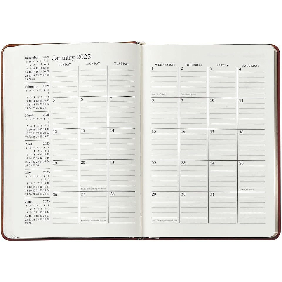 The versatile 7-inch notebook planner features month and week-at-a-view appointment pages plus pages for keeping notes on your daily activities.