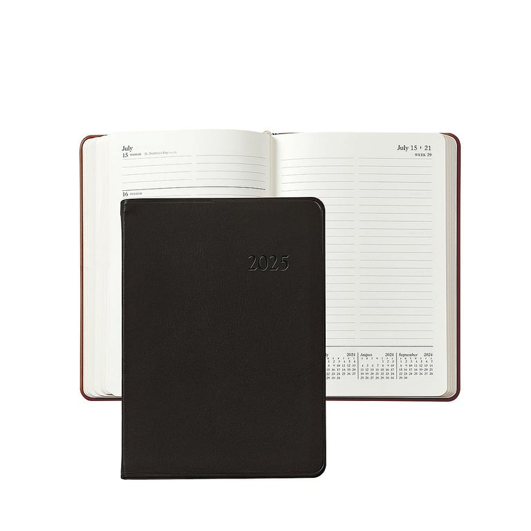 The versatile 7-inch notebook planner features month and week-at-a-view appointment pages plus pages for keeping notes on your daily activities.