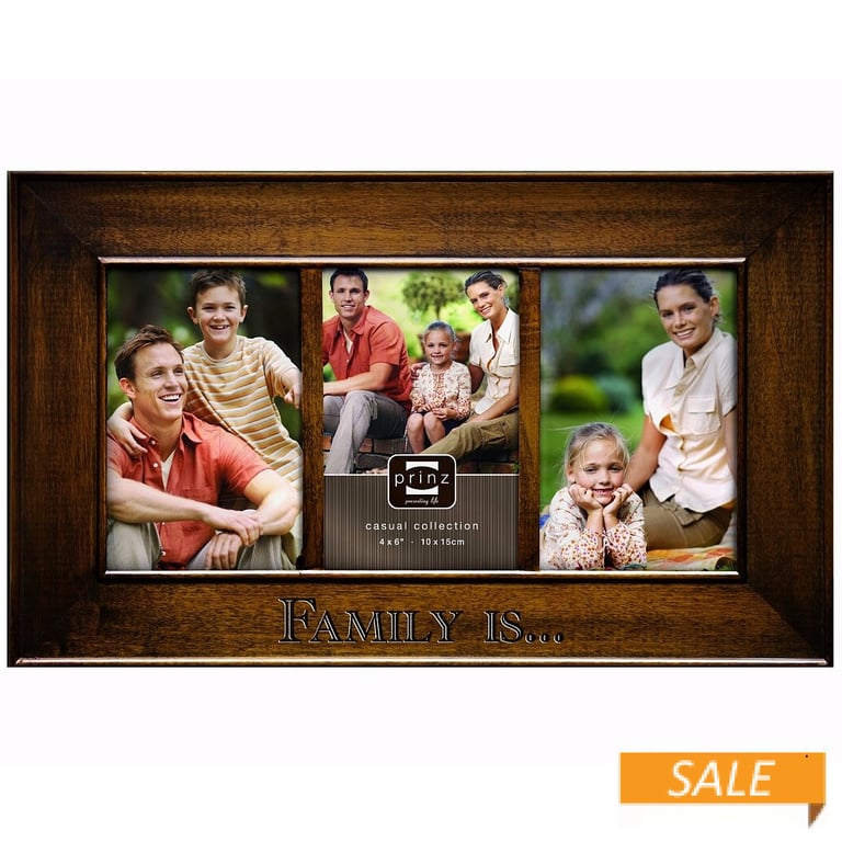 Main view Detail Product Details Prinz® frames & albums FAMILY IS ... Crossroads dark walnut collage frame from Prinz — Our CROSSROADS dark-walnut stained poplar wood frames makes a wonderful presentation for your photos.FAMILY IS ... engraved below photos. Holds three(3) 4"x6" prints.Use the included hook for easy wall mounting. Glare resistant glass lens.Moulding width is approximately 1½".By Prinz®. FAMILY IS ... Crossroads dark walnut collage frame from Prinz Model #086981739955 List $34.00 You pay $16.90 In stock Can be shipped today [?] Your Price Match is Active Your request for a price of $0.00 for a minimum quantity of has been accepted. You have [time] left to purchase this item for $0.00 instead of $16.90 each. Find a Lower Price? We BEAT All Authorized Retailers [?] This item ships in its own box SHARE THIS ITEM Share on Facebook