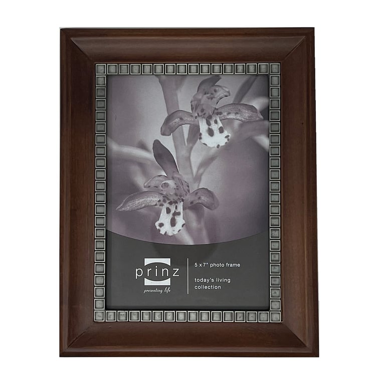 Main view Product Details Prinz® frames & albums Dark-walnut wood 5x7 MONTCLARE by Prinz® — Crafted from solid hardwoods, MONTCLARE is especially nice for your photo where the theme of the room is masculine with wood tones.Wood and metal inner border combine to create a stunning design. This style is made from a finely grained selection of wood, carefully stained this dark, rich walnut color. Glare resistant lens.Dual easel back for portrait or landscape display. Superb for desk displays, although it also has very easy to use wall mounts included.From the Prinz USA® collection. Dark-walnut wood 5x7 MONTCLARE by Prinz® Model #086981702980 List $29.50 You pay $24.95 This item IS in stock and can be expected to ship 01/28/2026 In stock Your Price Match is Active Your request for a price of $0.00 for a minimum quantity of has been accepted. You have [time] left to purchase this item for $0.00 instead of $24.95 each. Find a Lower Price? We BEAT All Authorized Retailers [?] FEATURESDisplays:5"x7"Material:Wood (full grain)Finish:Silver, BrownOccasion:Home decoratingStyle:Architectural, Contemporary, Rustic/Lodge, TraditionalOrientation:BothBrand:Prinz® frames & albumsDisplay Type:Desktop or Wall This item ships in its own box SHARE THIS ITEM Share on Facebook