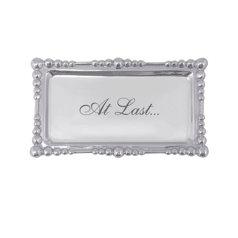 Main view Product Details Mariposa® AT LAST... PEARL DROP 7in TRAY by Mariposa® — Welcome a modern take on Mariposa's traditional String of Pearls Collection, the Pearl Drop Statement Tray joins the popular line. Here, engraved with the romantic AT LAST ... Important Note: Mariposa items are hand engraved. Your piece may differ slightly from the photo. SendAFrame stocks the entire Mariposa® picture frame line - and related Brand and Design styled items like this special tray. Shop the entire collection: Mariposa® Design Collection AT LAST... PEARL DROP 7in TRAY by Mariposa® Mariposa® WINTER CELEBRATION Savings - Buy More / Save More * Add this item to your cart for the full details of this promotion. Conditions may apply. Model #808813185408 $39.00 only 1 left, order soon. This item IS in stock and can be expected to ship 01/21/2026 In stock Your Price Match is Active Your request for a price of $0.00 for a minimum quantity of has been accepted. You have [time] left to purchase this item for $0.00 instead of $39.00 each. Find a Lower Price? We BEAT All Authorized Retailers [?] FEATURESMaterial:AluminumFinish:SilverOccasion:Congratulations, Good luck, Graduation, Inspirational, WeddingStyle:Contemporary, Eco-Friendly-Recycled, Modern, Romantic, Santa Fe, Shabby Chic, Words & whimsy, Sentiments | ready madeBrand:Mariposa®Display Type:not applicable n/a Approx. Overall Dimensions:6 3/4"x3 3/4"x1/2" This item ships in its own box SHARE THIS ITEM Share on Facebook