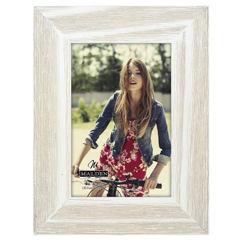Main view Product Details Malden Designs® WHITE-WASH WIDE LINEAR Wood 4x6 frame by Malden® — WHITE-WASH WIDE LINEAR wood picture frame with a weathered veneer. Nice WIDE border is terrific for personalizing. Glare resistant glass lens; easel back for dual standing on a tabletop. Crafted by Malden USA®. WHITE-WASH WIDE LINEAR Wood 4x6 frame by Malden® Model #096287141741 List $14.00 You pay $9.95 In stock Can be shipped today [?] Your Price Match is Active Your request for a price of $0.00 for a minimum quantity of has been accepted. You have [time] left to purchase this item for $0.00 instead of $9.95 each. Find a Lower Price? We BEAT All Authorized Retailers [?] FEATURESDisplays:4"x6"Material:Wood (mdf/engineered)Finish:White, Ivory/CreamOccasion:Friendship, Home decorating, Retirement, Teacher gifts, Team & coach gifts, Celebrating TravelsStyle:Rustic/Lodge, Shabby Chic, Sports & leisure, Distressed - Weathered, Coastal, Orientation:BothBrand:Malden Designs®Display Type:Desktop or Wall Approx. Overall Dimensions:6 1/4"x8 1/4"x1/2" This item ships in its own box SHARE THIS ITEM Share on Facebook