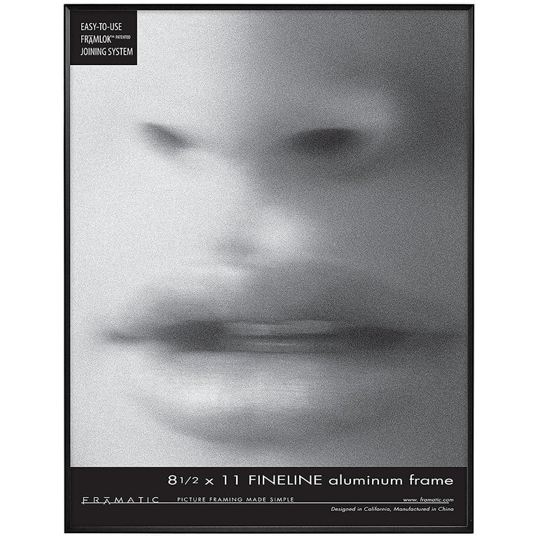 Main view Framelok System Product Details Framatic FINELINE Aluminum 8½x11 BLACK by Framatic® — Use the Framatics® FINELINE series for flattering, minimal, contemporary presentation of your art or prints. Thin aluminum frame is an elegant way to display photos and artwork Black finish Patented 'FRAMLOK' assembly system allows you to easily insert photo or artwork Polished edge glass Includes an adjustable hanger for either vertical or horizontal wall display Crafted by FRAMATIC®. FINELINE Aluminum 8½x11 BLACK by Framatic® Model #42005955 List $44.00 You pay $32.95 In stock Ships next business day [?] Your Price Match is Active Your request for a price of $0.00 for a minimum quantity of has been accepted. You have [time] left to purchase this item for $0.00 instead of $32.95 each. Find a Lower Price? We BEAT All Authorized Retailers [?] FEATURESDisplays:8.50"x11"Material:AluminumFinish:BlackOccasion:Business & office, Graduation, Home decoratingStyle:Architectural, Contemporary, MinimalOrientation:BothBrand:FramaticDisplay Type:Wall Only Approx. Overall Dimensions:8 5/8"x11 1/8"x7/8" This item ships in its own box SHARE THIS ITEM Share on Facebook