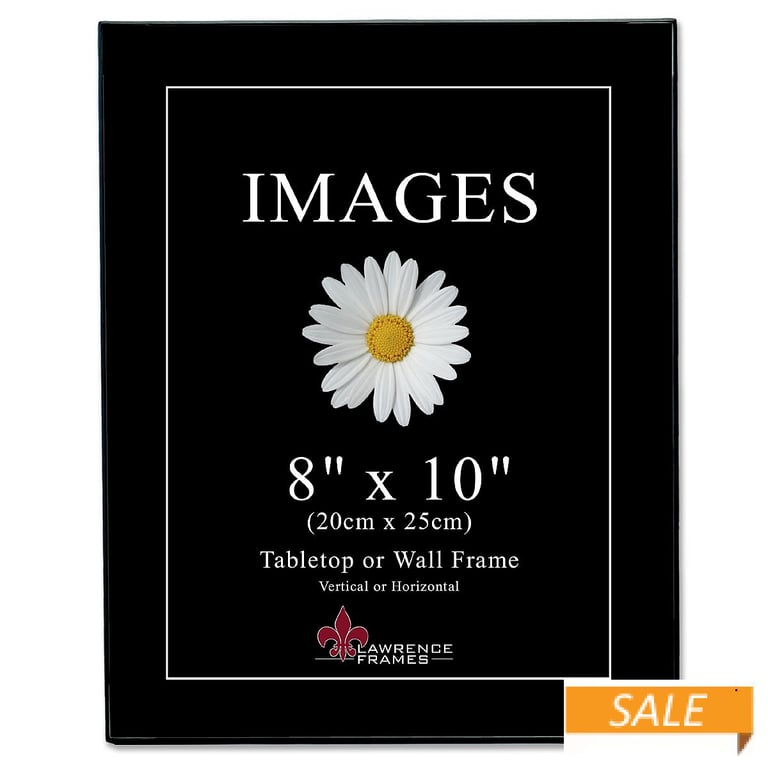 Product Details Lawrence Frames® Thin Black Line 8x10 document frame — Classic, trim black ABS plastic document frame.Features glare-resistant glass lens and hardboard backing. Convenient dual easel for either portrait or landscape tabletop display. Or use the wall mount for easy hanging. Crafted by Lawrence Frames®. Thin Black Line 8x10 document frame Model #48061001 List $11.00 You pay $5.90 In stock Can be shipped today [?] Your Price Match is Active Your request for a price of $0.00 for a minimum quantity of has been accepted. You have [time] left to purchase this item for $0.00 instead of $5.90 each. Find a Lower Price? We BEAT All Authorized Retailers [?] FEATURESDisplays:8"x10"Material:Acrylic | ResinFinish:BlackOccasion:Business & office, Congratulations, Employee honorsStyle:Classic, MinimalOrientation:BothBrand:Lawrence Frames®Display Type:Desktop or Wall Approx. Overall Dimensions:8 1/8"x10 1/8"x3/8" This item ships in its own box SHARE THIS ITEM Share on Facebook