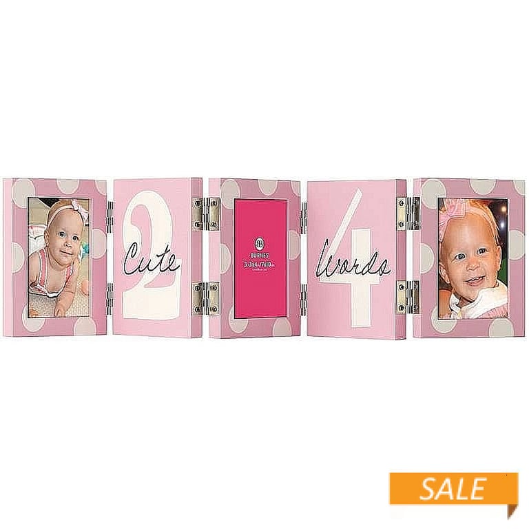 Main view Detail Product Details Burnes of Boston® 2-Cute-4-Words Hinged 3-opening Pink frame by Burnes — A wonderful celebration of the new baby girl in the family by Burnes®. 2 Cute 4 Words Add three great wallet-size photos and you have a gift that will make someone beam with joy anytime they see it ! Fashioned in pretty baby-pink finish. Glare resistant glass lenses.Produced by Burnes of Boston®. 2-Cute-4-Words Hinged 3-opening Pink frame by Burnes Model #08368063 List $12.50 You pay $5.90 In stock Can be shipped today [?] Your Price Match is Active Your request for a price of $0.00 for a minimum quantity of has been accepted. You have [time] left to purchase this item for $0.00 instead of $5.90 each. Find a Lower Price? We BEAT All Authorized Retailers [?] FEATURESMaterial:Wood (full grain)Finish:Pink, WhiteOccasion:Baby shower, Hanukkah, Christmas, Grandparent`s Day, Housewarming, Mother`s Day, New baby, Celebrating TravelsStyle:Contemporary, Words & whimsy, Child`s play, Expressions > ready madeBrand:Burnes of Boston®Display Type:Desktop Only This item ships in its own box SHARE THIS ITEM Share on Facebook