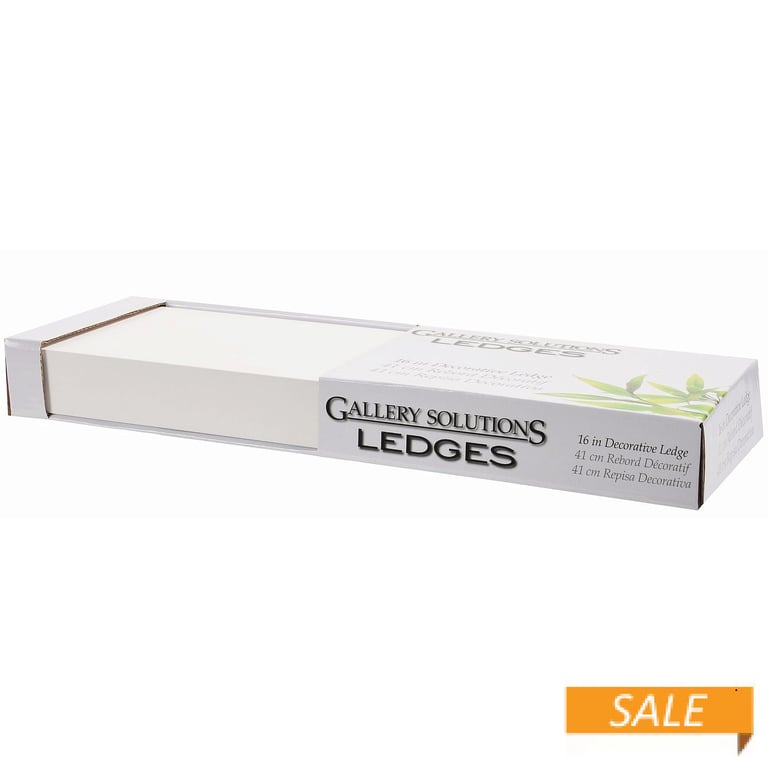 Product Details Gallery Solutions™ White 16inch PLANK LEDGE by Gallery Solutions® — Display cherished photos, art work and other small collectibles on fine crafted, solid wood ledge from Gallery Solutions®. Gallery Solutions®'s White Plank Float Ledge is 16" long. Ledge comes with its own easy to hang template for an accurate alignment on the wall. The ledge is great as a wall decor piece to add value to walls in a home or office. Crafted by by Gallery Solutions®, a division of the Nielsen-Bainbridge corporation. White 16inch PLANK LEDGE by Gallery Solutions® Model #55448930 List $45.00 You pay $22.49 In stock Ships next business day [?] Your Price Match is Active Your request for a price of $0.00 for a minimum quantity of has been accepted. You have [time] left to purchase this item for $0.00 instead of $22.49 each. Find a Lower Price? We BEAT All Authorized Retailers [?] FEATURESMaterial:Wood (full grain)Finish:WhiteOccasion:Business & office, Home decorating, HousewarmingStyle:Classic, TraditionalBrand:Gallery Solutions™Display Type:Wall Only Approx. Overall Dimensions:5"x16"x1 1/2" This item ships in its own box SHARE THIS ITEM Share on Facebook