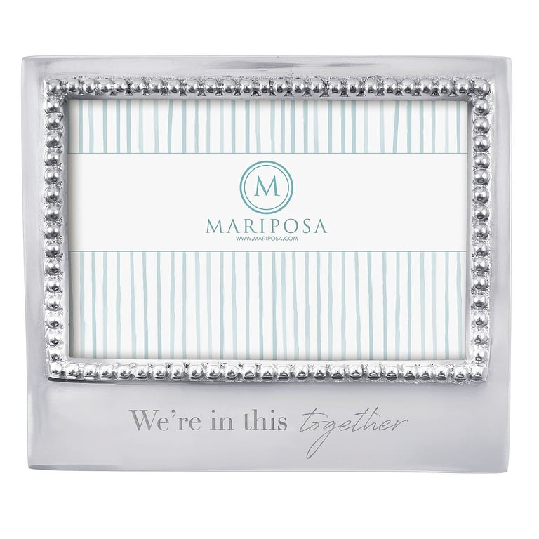 Main view Personalize Gifts for every occasion Product Details Mariposa® WE'RE IN THIS TOGETHER 6x4 STATEMENT frame by Mariposa® — The STATEMENT frame for a 6"x4" photo, engraved with the sentiment We're in this together Recycled aluminum. Glare resistant glass lens. Luxe easel back. SendAFrame stocks the entire Mariposa® picture frame collection. Mariposa® Design Collection Note: Item is hand engraved. Actual may differ slightly from photo. WE'RE IN THIS TOGETHER 6x4 STATEMENT frame by Mariposa® Mariposa® FALL CELEBRATION Savings - Buy More / Save More * Add this item to your cart for the full details of this promotion. Conditions may apply. Model #808813178226 $56.00 only 5 left, order soon. In stock Ships next business day [?] Your Price Match is Active Your request for a price of $0.00 for a minimum quantity of has been accepted. You have [time] left to purchase this item for $0.00 instead of $56.00 each. Find a Lower Price? We BEAT All Authorized Retailers [?] Approx. Overall Dimensions:6 3/4"x5 3/4"x1" This item ships in its own box SHARE THIS ITEM Share on Facebook