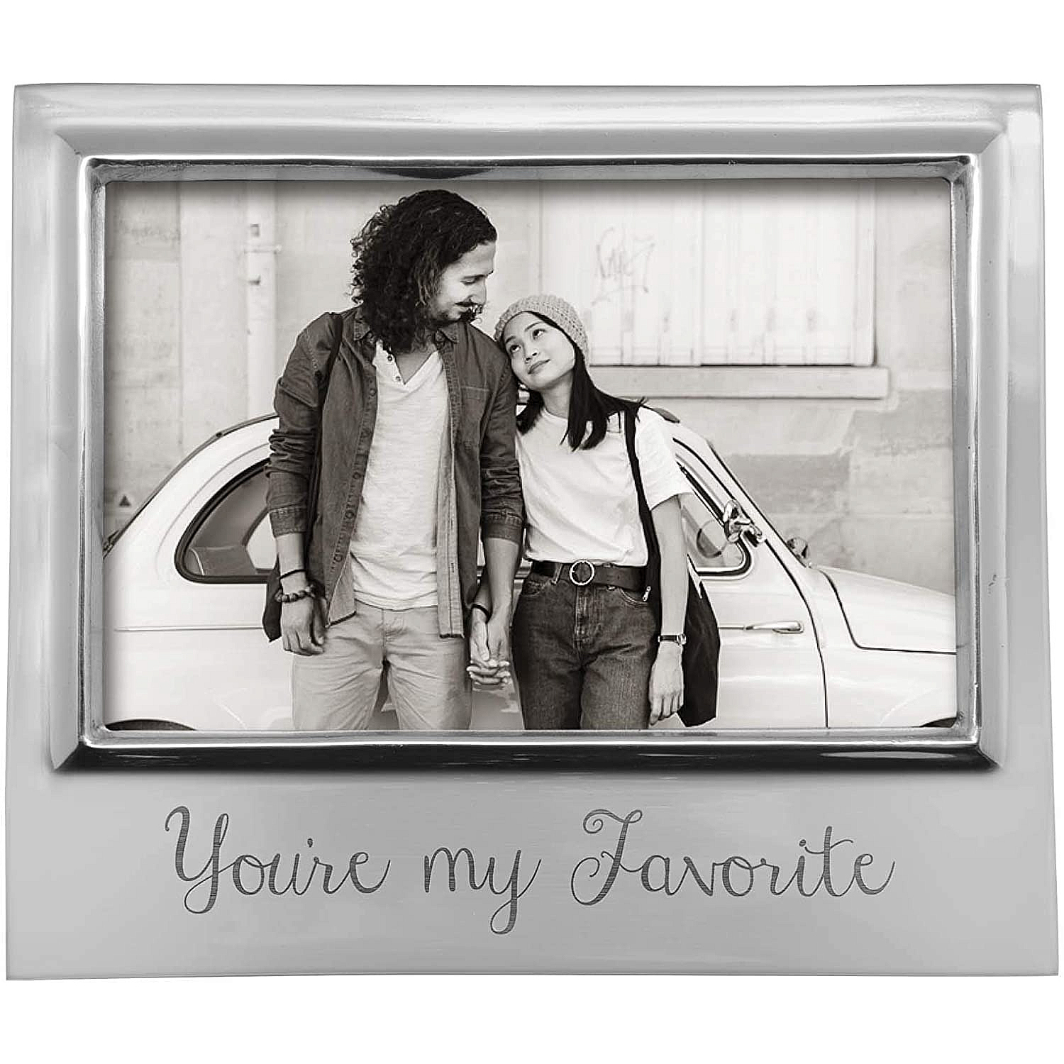 Main view Product Details Mariposa® YOU'RE MY FAVORITE 6x4 SIGNATURE frame by Mariposa® — Show your Love with the SIGNATURE frame for 6"x4" photos, engraved with the sentiment YOU'RE MY FAVORITE Mariposa fine metallic decor is from 100% recycled sandcast aluminum. Items will not tarnish If needed, handwash in warm water with mild soap and towel dry immediately Occasional use of non-abrasive metal polish will revive luster SendAFrame stocks the entire Mariposa® picture frame collection. Shop the entire collection: Mariposa® Design Collection Important Note: Mariposa items are hand engraved. Your piece may differ slightly from the photo. Hint: If you would like this style customized with names, a date . . . use the blank model and have us engrave for you. YOU'RE MY FAVORITE 6x4 SIGNATURE frame by Mariposa® Mariposa® FALL CELEBRATION Savings - Buy More / Save More * Add this item to your cart for the full details of this promotion. Conditions may apply. Model #808813165851 List $64.00 You pay $58.95 In stock Ships next business day [?] Your Price Match is Active Your request for a price of $0.00 for a minimum quantity of has been accepted. You have [time] left to purchase this item for $0.00 instead of $58.95 each. Find a Lower Price? We BEAT All Authorized Retailers [?] Approx. Overall Dimensions:6 3/4"x5 3/4"x1" This item ships in its own box SHARE THIS ITEM Share on Facebook