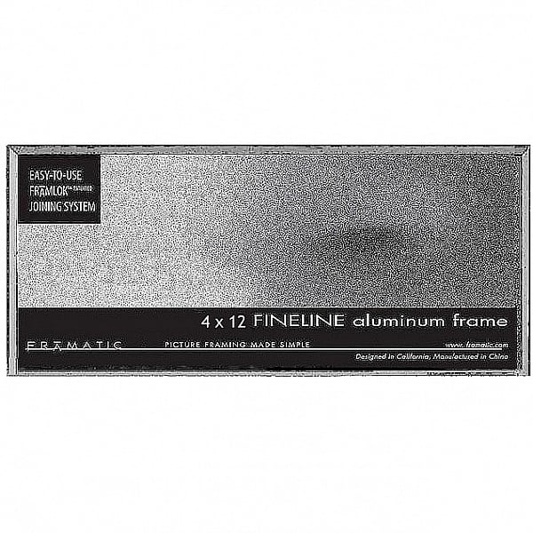 Main view Reverse (sample) Framelok System Product Details Framatic FINELINE Silver Aluminum 4x12 by Framatic® — Use the Framatics® FINELINE series for flattering, minimal, contemporary presentation of your art or prints. Thin aluminum frame is an elegant way to display photos and artwork Silver finish Patented 'FRAMLOK' assembly system allows you to easily insert photo or artwork Polished edge glass Detachable easel back for tabletop display Includes an adjustable hanger for either vertical or horizontal wall display Crafted by FRAMATIC®. FINELINE Silver Aluminum 4x12 by Framatic® Model #716242006570 List $24.50 You pay $14.95 In stock Ships next business day [?] Your Price Match is Active Your request for a price of $0.00 for a minimum quantity of has been accepted. You have [time] left to purchase this item for $0.00 instead of $14.95 each. Find a Lower Price? We BEAT All Authorized Retailers [?] FEATURESDisplays:4"x12"Material:AluminumFinish:SilverOccasion:Business & office, Home decoratingStyle:Architectural, Contemporary, MinimalOrientation:BothBrand:FramaticDisplay Type:Wall Only This item ships in its own box SHARE THIS ITEM Share on Facebook