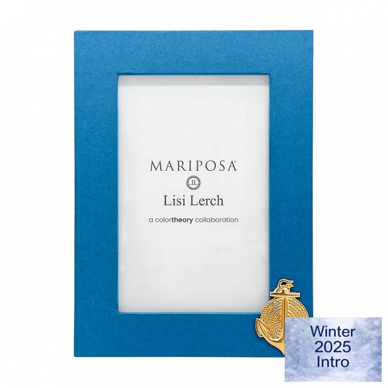 Main view Gift Packaging Product Details Mariposa® Anchor Denim-Blue 4x6 Frame by Mariposa® — Color Theory is a new slant on Mariposa fabulous frames. Meticulously crafted by hand in paper. Mariposa partnered with Lisi Lerch, whose eye for elegant, meaningful design aligns perfectly with our mission of offering thoughtful, beautifully crafted gifts. Lisi Lerch’s signature look is playful with personal details that celebrate the joyful themes in people’s lives, from ocean treasures to garden blooms and bows! Shop the entire collection: Mariposa® Design Collection Anchor Denim-Blue 4x6 Frame by Mariposa® Model #808813199757 $74.00 This item IS in stock and can be expected to ship 02/20/2026 Your Price Match is Active Your request for a price of $0.00 for a minimum quantity of has been accepted. You have [time] left to purchase this item for $0.00 instead of $74.00 each. Find a Lower Price? We BEAT All Authorized Retailers [?] FEATURESDisplays:4"x6"Material:PaperFinish:Blue, GoldOccasion:Birthday, Celebrating Travels, Congratulations, Friendship, Good luck, Graduation, Home decorating, Housewarming, Mother`s Day, Thank-Motivate-Reward, Weekend Host Gifts, AnniversaryStyle:Bold Colors, Contemporary, Eco-Friendly-Recycled, Modern (contemporary) wip, , , CoastalOrientation:Vertical OnlyBrand:Mariposa®Display Type:Desktop Only This item ships in its own box SHARE THIS ITEM Share on Facebook