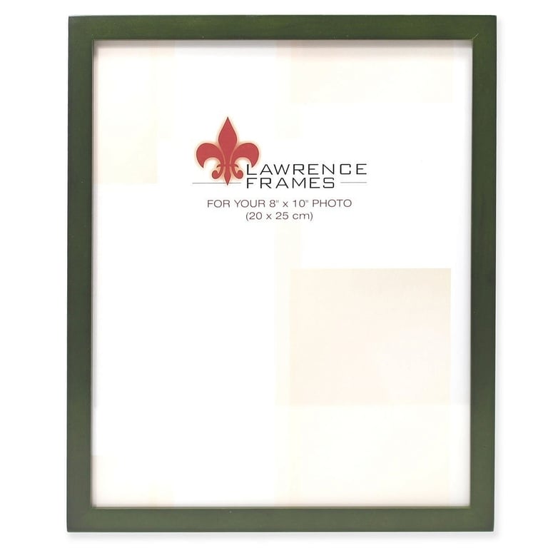 Product Details Lawrence Frames® SQUARE CORNER Green Stain classic 8x10 frame by Lawrence Frames® — From Lawrence®, a square corner "flat-top" frame.Frame edge is a very contemporary ½" all-around.Beautifully finished hardwood moulding with tapered seams. Glare resistant glass lens. Attractive black hardboard back. SQUARE CORNER Green Stain classic 8x10 frame by Lawrence Frames® Model #48067683 List $24.50 You pay $17.95 This item IS in stock and can be expected to ship 11/19/2025 Your Price Match is Active Your request for a price of $0.00 for a minimum quantity of has been accepted. You have [time] left to purchase this item for $0.00 instead of $17.95 each. Find a Lower Price? We BEAT All Authorized Retailers [?] FEATURESDisplays:8"x10"Material:Wood (full grain)Finish:GreenOccasion:Business & office, Corporate giftsStyle:Classic, Architectural, Minimal, ContemporaryOrientation:BothBrand:Lawrence Frames®Display Type:Desktop or Wall This item ships in its own box SHARE THIS ITEM Share on Facebook