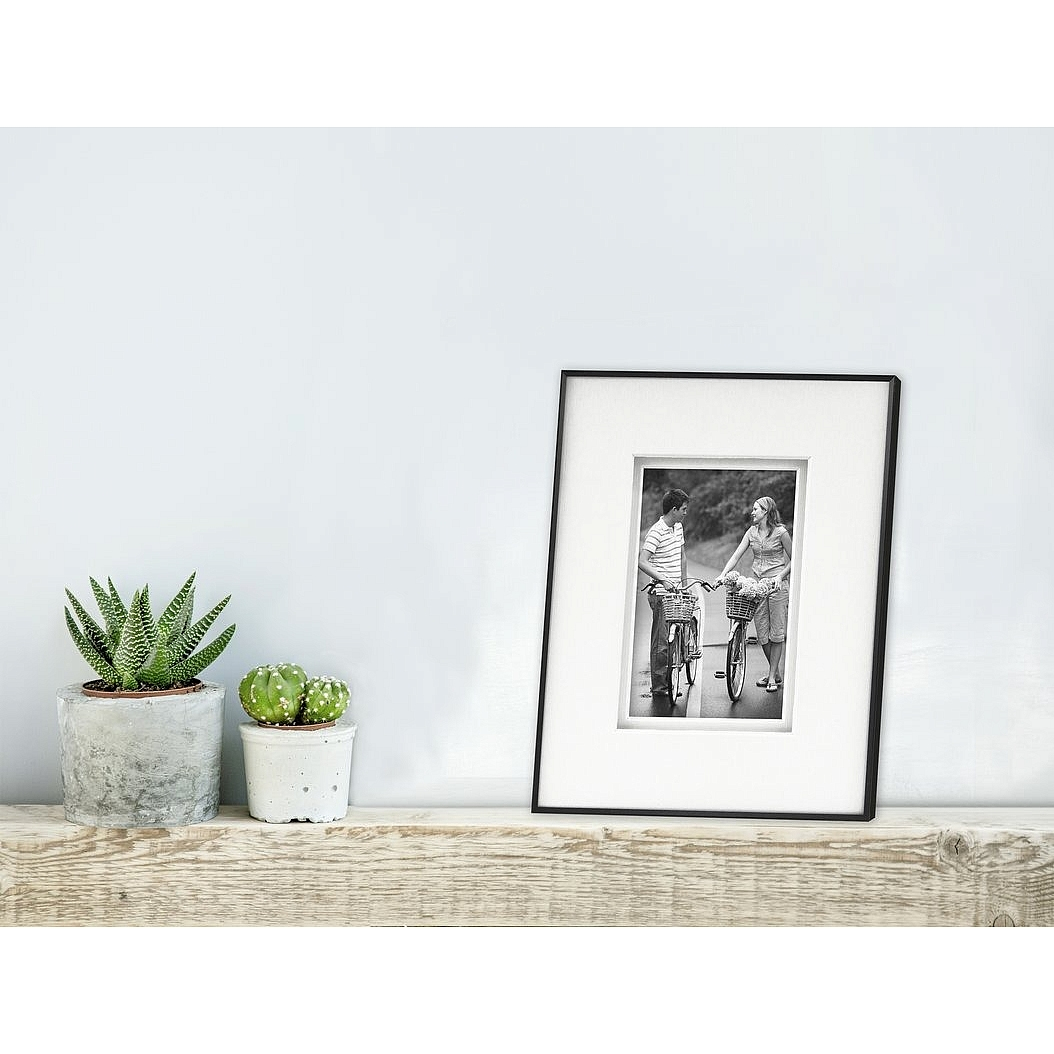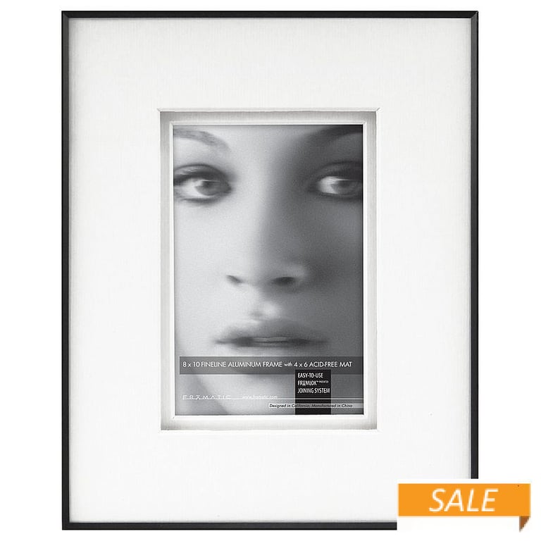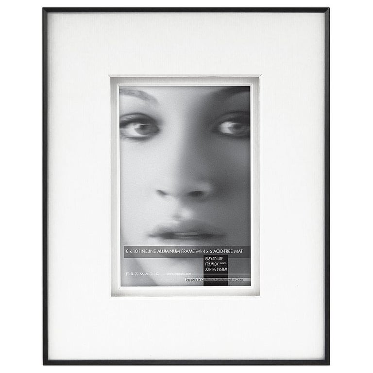 Main view Reverse (sample) Framelok System Product Details Framatic FINELINE Black Aluminum 8x10/4x6 Shadow-Matted by Framatic® — Use the Framatics® FINELINE series for flattering, minimal, contemporary presentation of your art or prints. Thin aluminum frame is an elegant way to display photos and artwork Black finish Displays a 4"x6" print with its shadow mat; 8"x10" without mat Patented 'FRAMLOK' assembly system allows you to easily insert photo or artwork Polished edge glass Detachable easel back for tabletop display Includes an adjustable hanger for either vertical or horizontal wall display Good style for an event signing board Crafted by FRAMATIC®. FINELINE Black Aluminum 8x10/4x6 Shadow-Matted by Framatic® Model #42008253 List $50.00 You pay $38.95 In stock Ships next business day [?] Your Price Match is Active Your request for a price of $0.00 for a minimum quantity of has been accepted. You have [time] left to purchase this item for $0.00 instead of $38.95 each. Find a Lower Price? We BEAT All Authorized Retailers [?] FEATURESDisplays:4"x6"Material:AluminumFinish:BlackOccasion:Business & office, Home decoratingStyle:Architectural, Contemporary, MinimalOrientation:BothBrand:FramaticDisplay Type:Desktop or Wall Approx. Overall Dimensions:8 1/2"x10 1/2"x5/8" This item ships in its own box SHARE THIS ITEM Share on Facebook