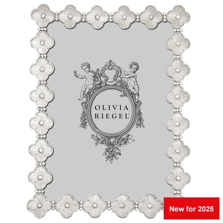 Back to results Scroll Items 2272 of 10915 Family Members 2.50"x3.50" - SILVER CLOVER $75.00 4"x6" - SILVER CLOVER $110.00 8"x10" - SILVER CLOVER $225.00 Main view Product Details Olivia Riegel SILVER CLOVER 5x7 frame by Olivia Riegel® — Inspired by the historic quatrefoil design - a decorative element utilized in architecture and the arts for millennia. Silver finished radial-textured pewter, adorned with hand-set clear European crystals. Elegant champagne hued moiré silk back, with easel designed for vertical or horizontal placement. Tarnish resistant. Signature luxury gift box included. An original design frame from the Olivia Riegel® collection. SILVER CLOVER 5x7 frame by Olivia Riegel® OLIVIA RIEGEL® WINTER Savings- Buy More / Save More * Add this item to your cart for the full details of this promotion. Conditions may apply. Model #850054966681 $135.00 This item IS in stock and can be expected to ship 01/28/2026 Your Price Match is Active Your request for a price of $0.00 for a minimum quantity of has been accepted. You have [time] left to purchase this item for $0.00 instead of $135.00 each. Find a Lower Price? We BEAT All Authorized Retailers [?] FEATURESDisplays:5"x7"Material:Jewels/crystalFinish:SilverOccasion:Anniversary, Birthday, Congratulations, Engagement, Graduation, Home decorating, Mother`s Day, Romantic, Thank-Motivate-Reward, WeddingStyle:Florals, Ornate, RomanticOrientation:BothBrand:Olivia RiegelDisplay Type:Desktop Only Approx. Overall Dimensions:3 1/2"x4 1/4" This item ships in its own box SHARE THIS ITEM Share on Facebook