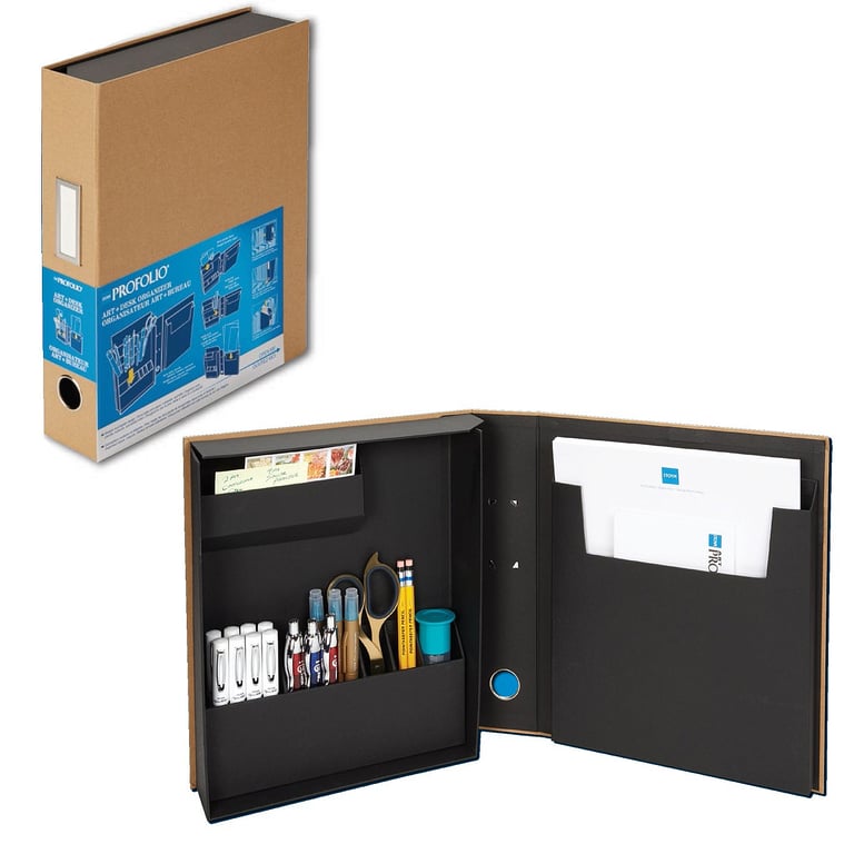 Main view Product Details Itoya Studio The ProFolio® Art + Desk Organizer Kraft-Paper-Brown by Itoya® — The ProFolio® Art + Desk Organizer is a better way to organize art supplies, pens, and desk accessories. Opens like a book - with all your stationery items neatly arranged inside (Left side): Store pens, pencils, scissors,and sticky notes (Right side): letters, coloring books, sketch pads, envelopes, and other paper products Closes for easy shelf or tabletop storage Constructed of durable paper stock for heavy-duty use features tabbed spine for personalizing the organizer on a shelf This kraft paper version (here) is easily customized with drawings or art Modern, stylish and practical design Note: Items shown inside are for photography only. Organizer ships unfilled To view all styles in the Itoya family, click: Itoya® Photo Filing Systems The ProFolio® Art + Desk Organizer Kraft-Paper-Brown by Itoya® Model #075633602228 List $20.00 You pay $17.95 In stock Ships next business day [?] Your Price Match is Active Your request for a price of $0.00 for a minimum quantity of has been accepted. You have [time] left to purchase this item for $0.00 instead of $17.95 each. Find a Lower Price? We BEAT All Authorized Retailers [?] FEATURESMaterial:Archival | Photo-SafeFinish:Brown, Brown(Light)/TanOccasion:Back to School, Business & office, Craft Projects, GraduationStyle:Contemporary, Hi-tech, Sophisticated, Travel ReadyBrand:Itoya StudioDisplay Type:not applicable n/a Approx. Overall Dimensions:10 1/4"x12 1/4"x2 1/2" This item ships in its own box SHARE THIS ITEM Share on Facebook