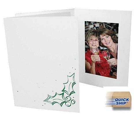 Collectors Gallery Holly Holiday Foil on White Cardboard Photomount Folder 4x6 frame —