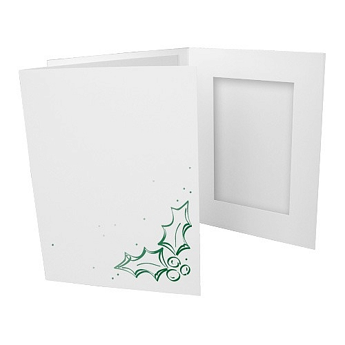 Our photo folder in white, accented with a holly in green foil. The design is hot stamped (imprinted) onto the front of the folder as shown.