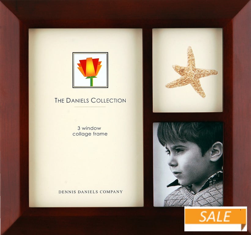 Product Details Dennis Daniels® Triple dark walnut-stain wood 4x6 / 2½x3 collage by Dennis Daniels® — This is a wonderful rich walnut collage frame. It will hold three prints or photos inside its 3 windows: one 4"x6" photo and two 2½"x3" photos Features glare resistant glass lenses and hardboard easel back.It will sit easily on a desk or hang in a small spot (hooks always provided) to create a nice sweet tone to the room. Overall, the picture frame measures approximately 8"x7½".Fine crafted expressly for quality conscious customers by Dennis Daniels® of California. Triple dark walnut-stain wood 4x6 / 2½x3 collage by Dennis Daniels® Model #80010141 List $19.50 You pay $11.90 In stock Can be shipped today [?] Your Price Match is Active Your request for a price of $0.00 for a minimum quantity of has been accepted. You have [time] left to purchase this item for $0.00 instead of $11.90 each. Find a Lower Price? We BEAT All Authorized Retailers [?] FEATURESMaterial:Wood (full grain)Finish:BrownOccasion:Birthday, Business & office, Corporate gifts, Home decorating, Housewarming, Celebrating TravelsStyle:Classic, Minimal, TraditionalBrand:Dennis Daniels®Display Type:Desktop or Wall Approx. Overall Dimensions:8"x7 1/2" This item ships in its own box SHARE THIS ITEM Share on Facebook